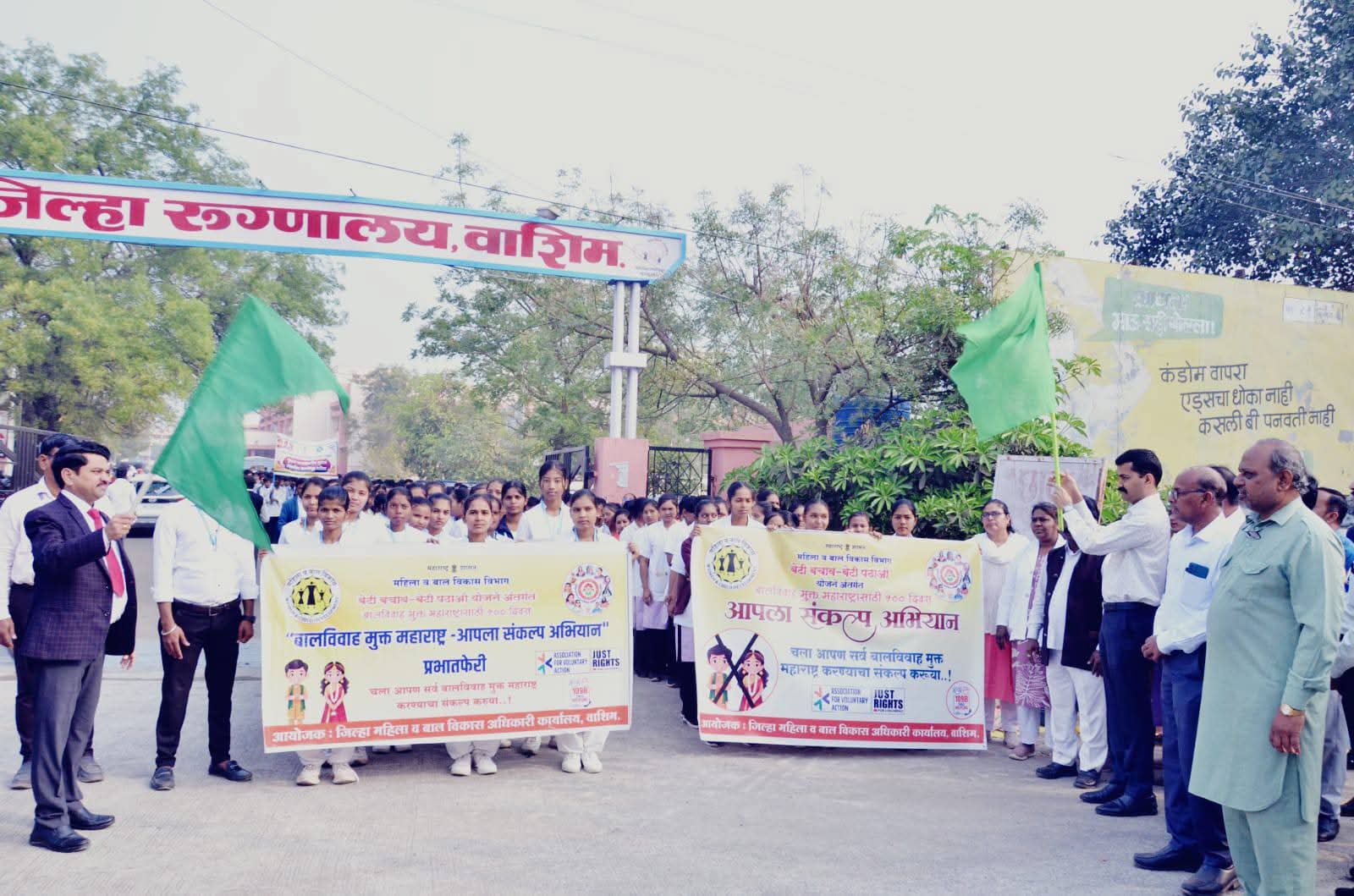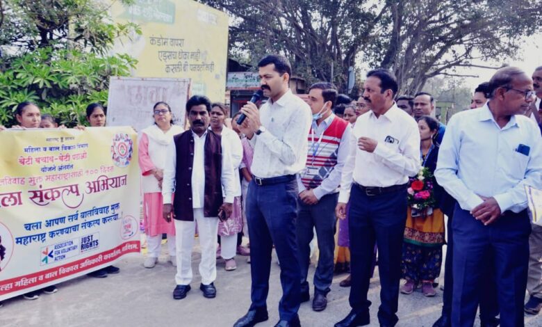 बेटी बचाव बेटी पढाव या केंद्र शासनाच्या महत्त्वाकांक्षी अभियानाअंतर्गत ‘बालविवाह मुक्त महाराष्ट्र – आपला संकल्प’ या अभियानाच्या प्रभावी अंमलबजावणीसाठी जिल्हा प्रशासनाच्या वतीने भव्य जनजागृती रॅलीचे आयोजन करण्यात आले. या रॅलीला जिल्हाधिकारी श्री. योगेश कुंभेजकर यांनी हिरवा झेंडा दाखवून शुभारंभ केला. यावेळी जिल्हाधिकारी बोलत होते.