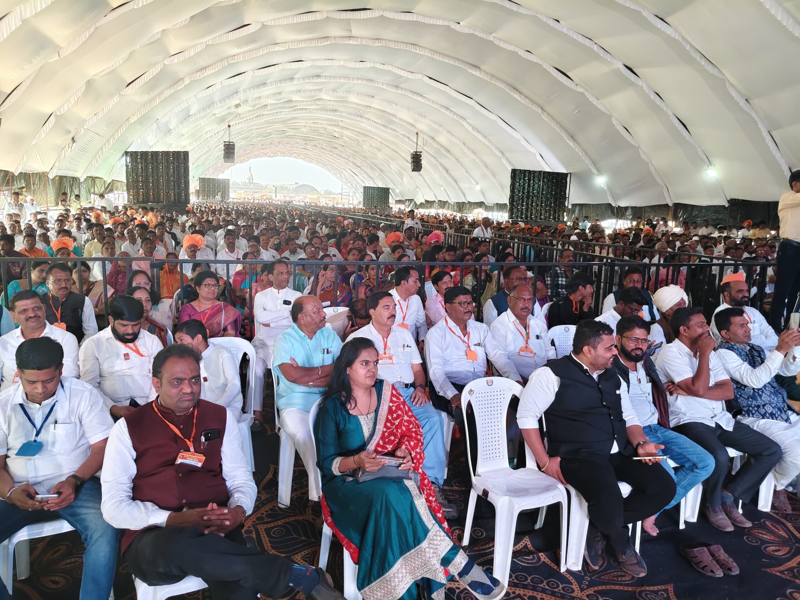 कार्यक्रमात केंद्रीय मंत्री नितीन गडकरी यांचा संदेश दाखविण्यात आला. यावेळी मराठा विश्व भूषण पुरस्कार कैलास काटकर, मराठा शिक्षण भूषण पुरस्कार प्रा. रामदास झोळ, जिजाऊ पुरस्कार गंगा कदम, मराठा कृषी भूषण पुरस्कार अमृतराव देशमुख तसेच मराठा क्रीडा भूषण पुरस्कार रितेश केरे यांना मान्यवरांच्या हस्ते प्रदान करण्यात आले. कार्यक्रमात प्रेरणादायी गीत सादर करण्यात आले.