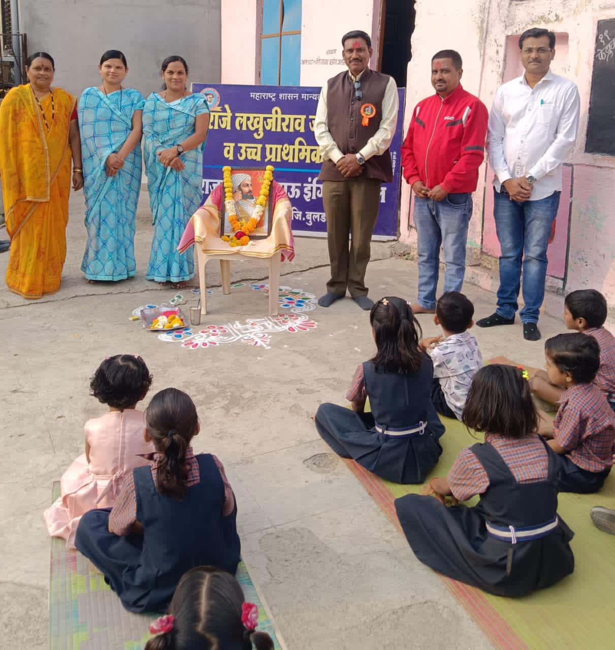 सिंदखेडराजा येथील राजे लखोजीराव जाधव उच्च प्राथमिक शाळा येथे आज छत्रपती शिवाजी महाराज यांची जयंती अत्यंत उत्साहपूर्ण आणि प्रेरणादायी वातावरणात साजरी करण्यात आली. कार्यक्रमाची सुरुवात शिवरायांच्या प्रतिमेस पुष्पहार अर्पण करून व दीपप्रज्वलनाने करण्यात आली. यानंतर उपस्थित मान्यवर, शिक्षकवृंद व विद्यार्थ्यांनी सामूहिक मानवंदना देत शिवरायांना अभिवादन केले.